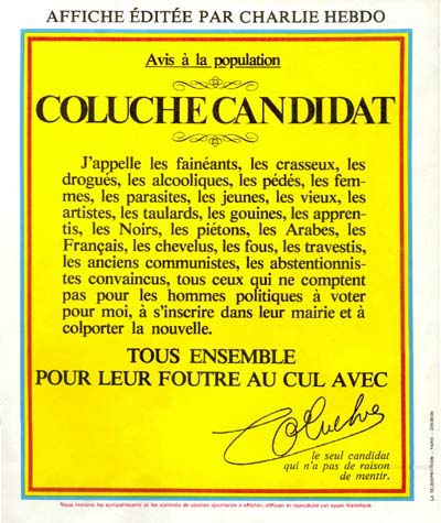 La candidature avortée de Coluche en 1981 constitue à la fois l'apogée et le déclin de l'esprit Charlie/Hara-Kiri. En effet, Coluche renonce et Charlie s'arrête à la fin de l'année, faute de lecteurs, de soutiens et de financements. La deuxième vie de Charlie commence sous la direction de Philippe Val dans les années 1990 mais sans jamais retrouver l'esprit frondeur très particulier des années 1970. Philippe Val était certes un humoriste (son duo comique avec Patick Font) mais il perdit beaucoup de cet humour à la tête de Charlie. On peut tout de même insister sur le fait qu'en dépit de son parcours chaotique, Charlie a toujours eu au moins une ligne directrice cohérente, celle de François Cavanna : radicalement républicaine et laique, foncièrement antiraciste. Avec un peu les mêmes types d'"excès" que l'on pouvait connaître sous la IIIème République anticléricale d'avant 1914, lesquels excès étaient d'ailleurs déjà protégés par la loi (de 1881 sur la liberté d'expression). Mai-68 a toutefois déplacé certains enjeux de cette liberté : la révolution de mai a encouragé la libération de la parole et du dessin sur des thèmes jusque là fortement (auto)censurés, ainsi la sexualité, la drogue, le nucléaire etc. De fait, Charlie est apparu aussi comme un véritable défouloir pour les dessinateurs, jusque là contraints par la loi de 1949 (publications pour la jeunesse), notamment ceux travaillant pour Pilote ou d'autres journaux un peu moins "libres" de ton. Le génie de Reiser, de Gébé, de Wolinski ou de Cabu s'était certes déjà manifestés dans le Hara-Kiri des années 1960 mais il éclata vraiment dans les années 1970, dans le cadre hebdomadaire de Charlie - après le censure du hebdo Hara-Kiri suite au "bal tragique à Colombey - et cela sans contrainte ni la peur de déplaire ou de choquer. Ces dessinateurs furent aussi les mentors de la plus jeune génération, celle des Luz, Charb, Tignous, Honoré, Coco etc...La décision prise par Philippe Val (et sa rédaction, dont Charb, Cabu et les autres) de publier en 2006 les caricatures de Mahomet et de récidiver en novembre 2011 est liée à la polémique née de la publication de caricatures du prophète dans le journal danois Jyllands-Posten. Les locaux du journal ont été détruits en 2011 par un incendie criminel. On connaît malheureusement la suite.