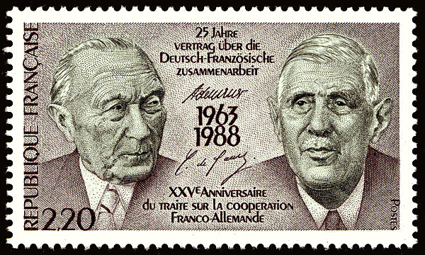 De fait, c’est le général de Gaulle qui apparaît comme le personnage présidentiel le plus représenté dans la philatélie depuis 1970. Il est en effet célébré comme le premier président de la Vème République mais aussi comme le résistant, l’Homme du 18 juin (une dizaine de timbre émis sur la seule période 1940-1944) et le président du GPRF à la Libération. Il est aussi associé à toute sortes de monuments, réalisations et anniversaires : ainsi l’amitié franco-allemande (en 1988), l’aéroport Ch.de Gaulle (1974), le porte-avion Ch. de Gaulle (2003) et quelques autres thématiques.