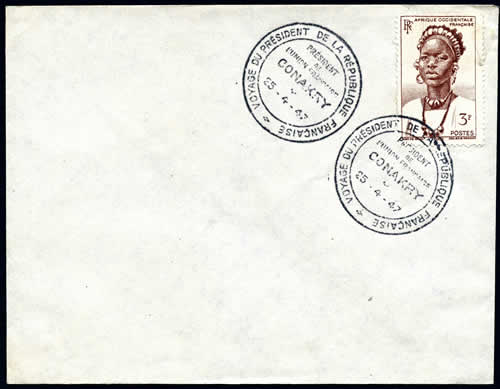 En ce qui concerne les autres marques postales, plusieurs oblitérations sont à remarquer, celles du cachet dateur de la présidence bien sûr, mais aussi certains cachets plus spécifiques : ceux du Congrès de Versailles, des voyages présidentiels, des « Premiers jours » d’émission des timbres. Les oblitérations du Congrès pour l’élection du président par les deux chambres ne concernent évidemment pas sous la Vème République l’élection du président au suffrage universel (celle-ci est actée en 1962 et se déroule en 1965), mais on trouve toutefois une rare griffe du 21 décembre 1958, à l’occasion de l’élection de Charles de Gaulle par les "grands électeurs". C’est à partir du 18 février 1899, à l’occasion de l’élection de Loubet, qu’est utilisé un cachet « Versailles Congrès Poste » qui officialise en quelque sorte cette journée historique.
